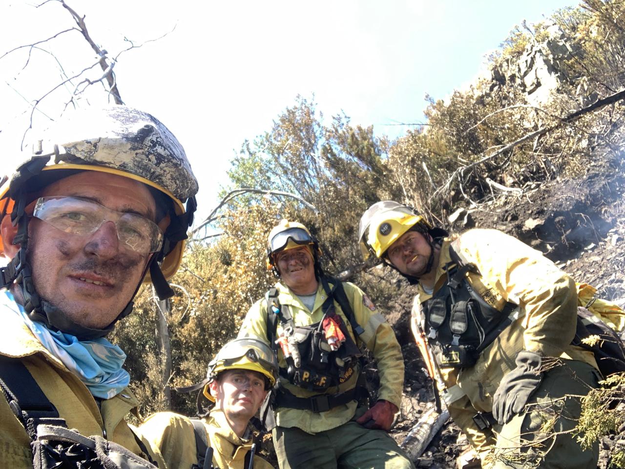 Otro de los brigadistas, Ángel Melchiori, explicó: «Estuvimos trabajando en afianzar cola y flanco de los incendios, es decir liquidar los pequeños reinicios que quedan luego de desactivar un incendio. Esto se hace con herramientas de mano, bombas de agua y el apoyo permanente de los medios aéreos; ya que siempre tuvimos a disposición helicópteros y aviones. A raíz de vientos provenientes de la cordillera, hubo un reinicio en un pinar de Cholila que no se alcanzó a enfriar, generando focos secundarios de incendio. Por ello, estuvimos trabajando de madrugada para contener este salto ígneo, terminando de liquidarlo al día siguiente aprovechando la luz diurna», ejemplificó.
