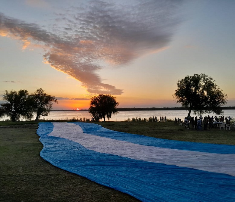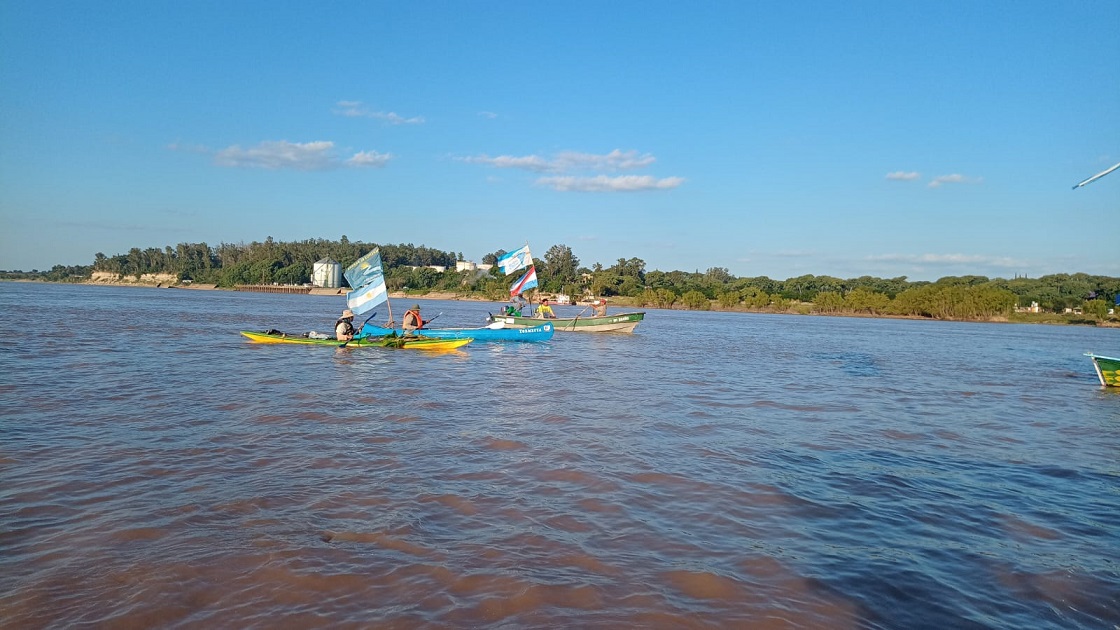 En la llegada, banderas argentinas al viento saludaron el arribo. La actividad principal para convocar fue programada como una reunión de “mujeres de río”, había adelantado la militante por los derechos humanos, Lorena Luna.