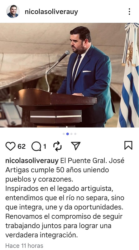 Por otro lado, refirieron a los dichos del intendente de Paysandú, Nicolás Olivera, que a través de sus redes sociales, realizó una publicación, donde afirma que: “Inspirados en el legado artiguista entendimos que el río no separa, sino que integra, une y da oportunidades. Renovamos el compromiso de seguir trabajando juntos para lograr una verdadera integración”. A esta afirmación, los vecinos señalaron: “Estas declaraciones no se condicen con su actitud de hace un tiempo atrás, donde declaraba también que ‘no está el ánimo de cambiar la ubicación del proyecto’”.