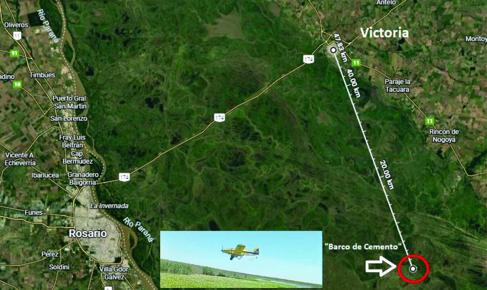A través grupos de WhatsApp y de un teléfono a otro, en los primeros días de diciembre comenzó a circular entre isleños y gente vinculada a la vida en el Delta un video que muestra el vuelo rasante de una avioneta fumigando en una zona de humedales. Se ve la avioneta pasando muy cerca de la superficie del agua luego de rociar con venenos un campo situado sobre una curva de un pequeño curso de agua en medio del humedal. De acuerdo a distintas fuentes consultadas se trata de un paraje muy cercano a donde se encuentra semi hundida «Le Saglier», una embarcación conocida como “El barco de cemento” varada desde 1965, en la confluencia del río Victoria y el arroyo Las Bateas.