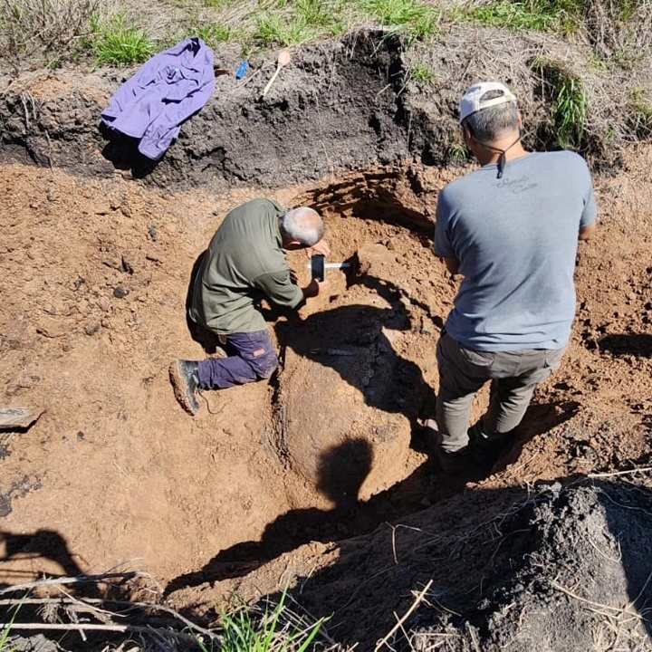 Este martes se llevó adelante la “Campaña paleontológica en Colonia Avelina” para desenterrar los restos de un gliptodonte. La intervención estuvo a cargo personal del Museo Antropológico Antonio Serrano, quienes realizaron allí un intenso trabajo a campo. Estuvo presente el coordinador del Museo, Gastón Fleita Moreyra; la encargada del registro paleontológico de Entre Ríos, Graciela Ibargoyen, junto a los técnicos Jorge Flores y Sergio Médina.