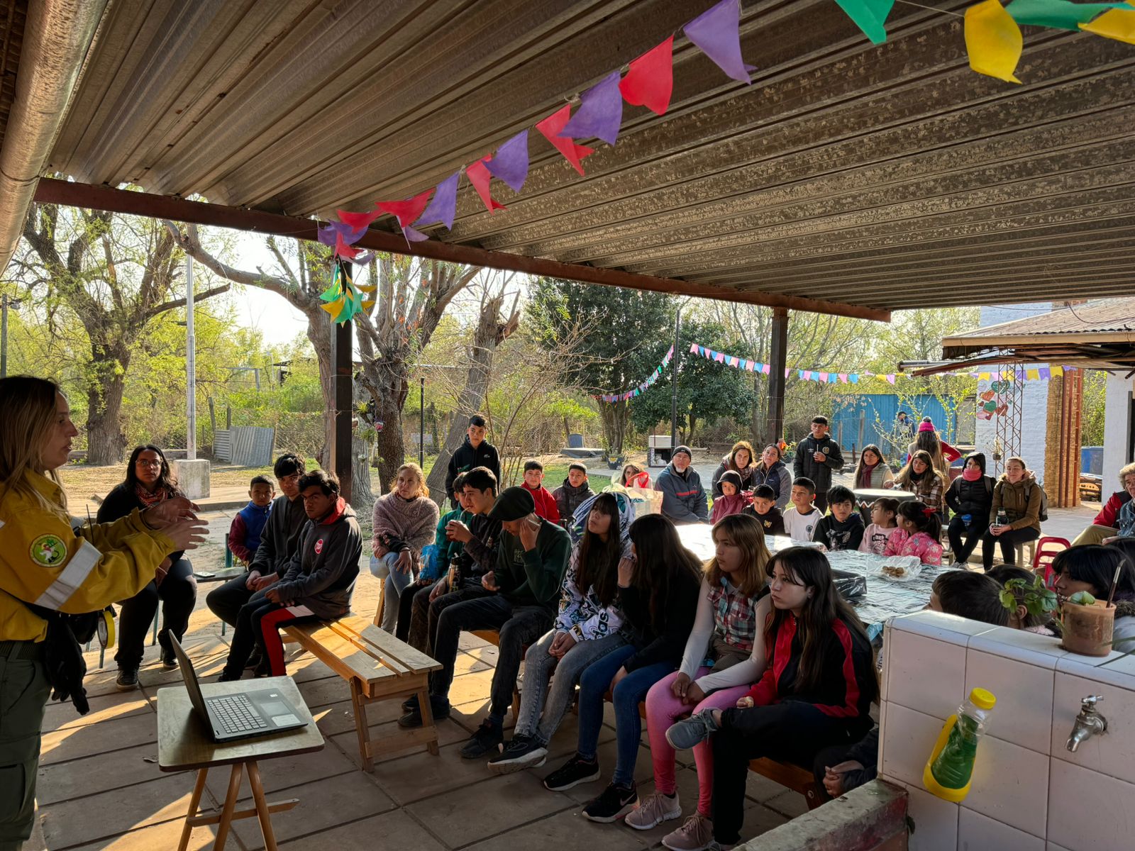 La actividad tuvo contenidos teóricos y prácticos y se llevó adelante en el patio y aulas de la escuela y en sectores cercanos a la misma. Al inicio, los participantes se dividieron en dos grupos. Uno abordó aspectos generales relativos a los incendios: cuáles son los elementos y condiciones necesarias para que ocurran, tipos y partes de un incendio, medidas de prevención y de seguridad personal, acciones frente a la ocurrencia de incendios. El otro grupo, que ya contaba con conocimientos previos, abordó aspectos técnicos referidos a estrategias para el combate del fuego y al uso de herramientas específicas. En una segunda parte, todo el grupo dividido en dos cuadrillas, realizó una actividad práctica que consistió en hacer un cortafuego con herramientas de mano bajo la supervisión del equipo de la Brigada de Respuesta Ambiental.