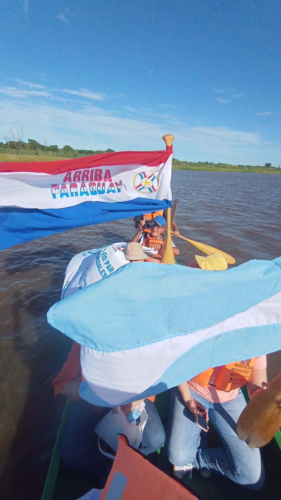 “Estamos en Clorinda, sobre el río Paraguay. Hemos hecho inicio de ‘Remar Contracorriente’, en este hermoso lugar, junto al cerro Lambaré, en la desembocadura del río Pilcomayo. Lo hacemos en este lugar por la importancia en la vía troncal del río Paraná. El río Paraná y el río Paraguay es la vía por donde se está llevando adelante esta privatización, proyectada estas intervenciones que traerá todos los inconvenientes en los humedales de la cuenca del Plata. Por eso la importancia de este lugar, donde hemos venido al Puerto Pilcomayo, donde nos acompañan vecinos, pescadores, remeros de distintas escuelas de remo. Así hemos iniciado la remada, en un lugar tan importante, en un día histórico para el pueblo paraguayo, en donde se marca el final de la Guerra de la Triple Alianza, que trajo todas esas consecuencias de tanto dolor en los pueblos de américa del sur. Bueno, hoy, hermanamos a los pueblos, el río nos une para el cuidado y protección de nuestros recursos naturales”, sostuvo Cosita al iniciar la remada.