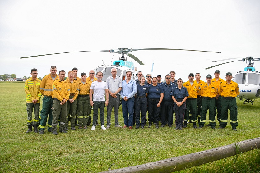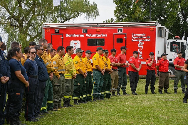 El encuentro protocolar se realizó en Alvear, provincia de Santa Fe y contó con la participación del anfitrión, ministro de Ambiente y Cambio Climático de Santa Fe, Enrique Estévez; el ministro de Seguridad de la Provincia de Buenos Aires, Javier Alonso; el ministro de Desarrollo Económico de Entre Ríos, Guillermo Bernaudo; el secretario de Protección Civil y Gestión del Riesgo de Santa Fe, Marcos Escajadillo; brigadistas, equipos técnicos, protecciones civiles de las tres provincias, representantes de gobiernos locales santafesinos y funcionarios de la AFE.