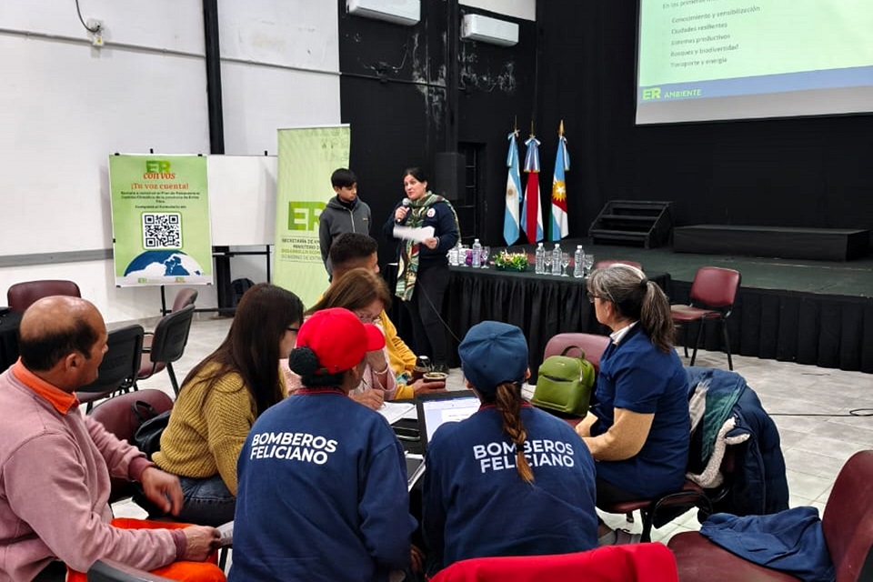 La actividad fue organizada por la Secretaría de Ambiente, dependiente del Ministerio de Desarrollo Económico, junto a la Municipalidad de Feliciano. El encuentro convocó a vecinos, representantes de sectores productivos, organizaciones locales y autoridades provinciales, con el objetivo de integrar las voces y saberes de la comunidad en la construcción de estrategias de adaptación y mitigación frente al cambio climático.