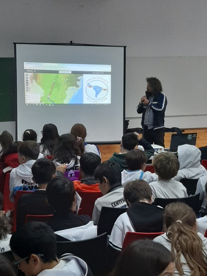 La primera ronda de charla con estudiantes se llevó adelante el viernes 25 de abril con 6º grados de las escuelas primarias en dos turnos. Por la mañana con las escuelas Nº 16 «Francisco Soler», Nº 19 «Balbarrey», Nº 8 «Juan Martín de Pueyrredón», Nº 194 «Filiberto Reula», Nº 161 «República de Entre Ríos» y la anfitriona, en su gran Salón, la Escuela Normal «José María Torres». “Más de 200 estudiantes con sus docentes se dieron cita a partir de las 10:00 para conocer de primera mano la experiencia de los protagonistas de 22 días de remada por el río Paraná”, contaron desde Agmer.