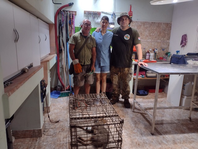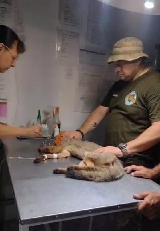 Una vez en el lugar, hubo que encontrar al animal que se había guarecido, tarea que demandó un buen tiempo ya que la tarea que se vio dificultada por la geografía del lugar y el estado de estrés de la zorra que estaba muy atemorizada. Finalmente, una vez ubicada, “se logró inmovilizarlo de forma segura, iniciando la etapa más delicada del procedimiento: la extracción de la trampa”, señaló Borda a ERA Verde. Tras retirar el artefacto de caza, el animal fue colocado en un contenedor de traslado y derivado de urgencia a la veterinaria “Lobo Pe”, a cargo de la profesional Rosemarie Frutos Ghibaudei, en la localidad de Primero de Mayo. Allí se determinó que la extremidad afectada presentaba síntomas avanzados de gangrena, por lo que fue necesaria una cirugía de amputación de la pata delantera izquierda, ya que la lesión hacía imposible su recuperación, se evaluó.