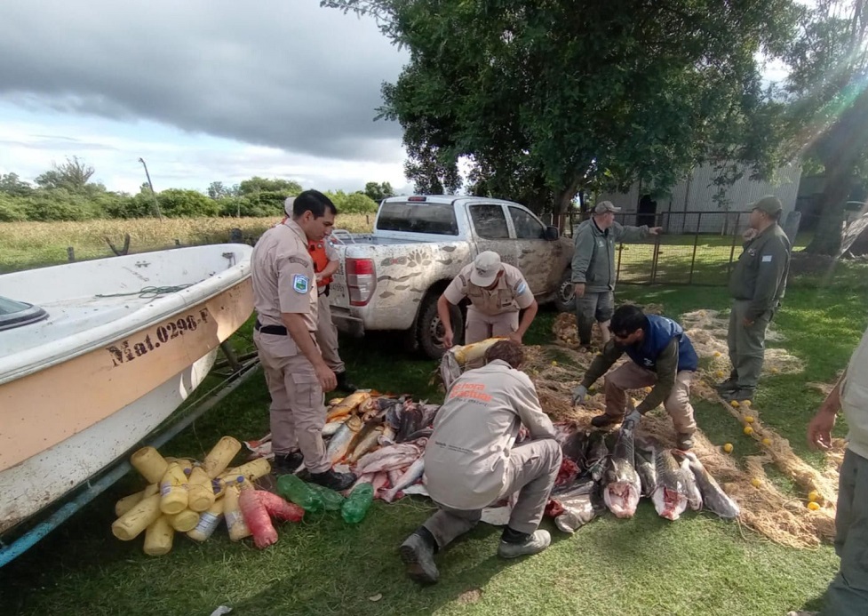 En los procedimientos se labraron actas de infracción y se secuestraron más de 500 metros de mallas y ejemplares de distintas especies -entre ellas dorado, surubí, sábalo, patí y manguruyú– a pescadores comerciales y deportivos que no contaban con licencias habilitantes o que incumplían regímenes de vedas y cupos de captura.