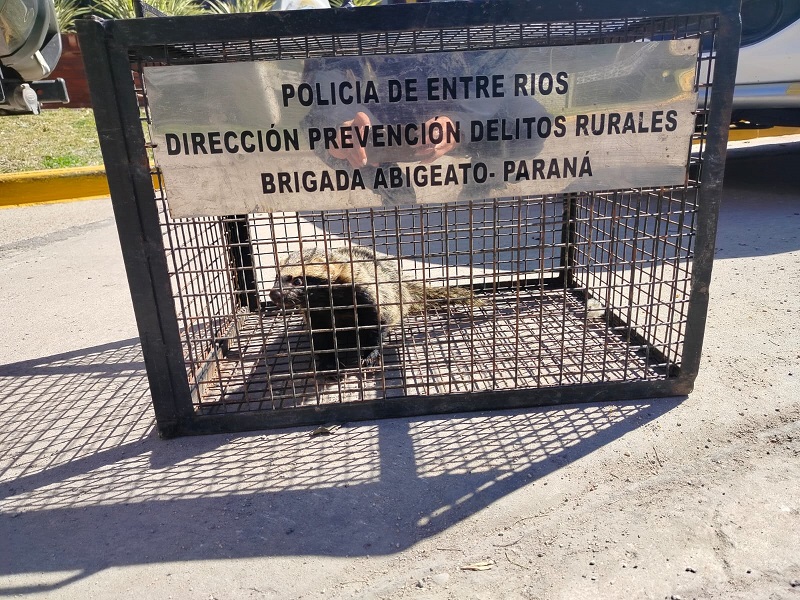 La Brigada de Abigeato Paraná informó que rescató a un hurón argentino o hurón menor (Galictis cuja), un mamífero carnívoro silvestre que estaba en cautiverio e...